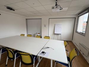 Elle dispose d’un système de vidéoconférence, de tableau, paperboard et de toutes papeteries nécessaires.