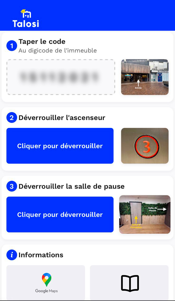 - ouverture des portes via un lien sécurisé